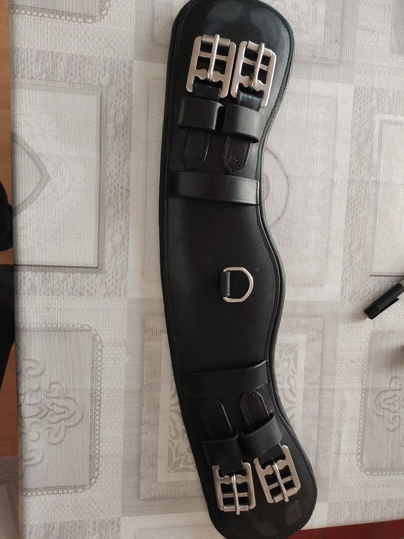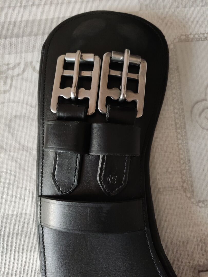 Läderbälte med kort längd Moon Girth 45cm - Harness för puggiga ponnyer. Används gärna, men jag är nu rädd att min ridboll helt enkelt kommer att blåsa av den när jag andas och skjuta mig i omloppsbana, eftersom den definitivt inte längre har en vältränad Adonis-figur.