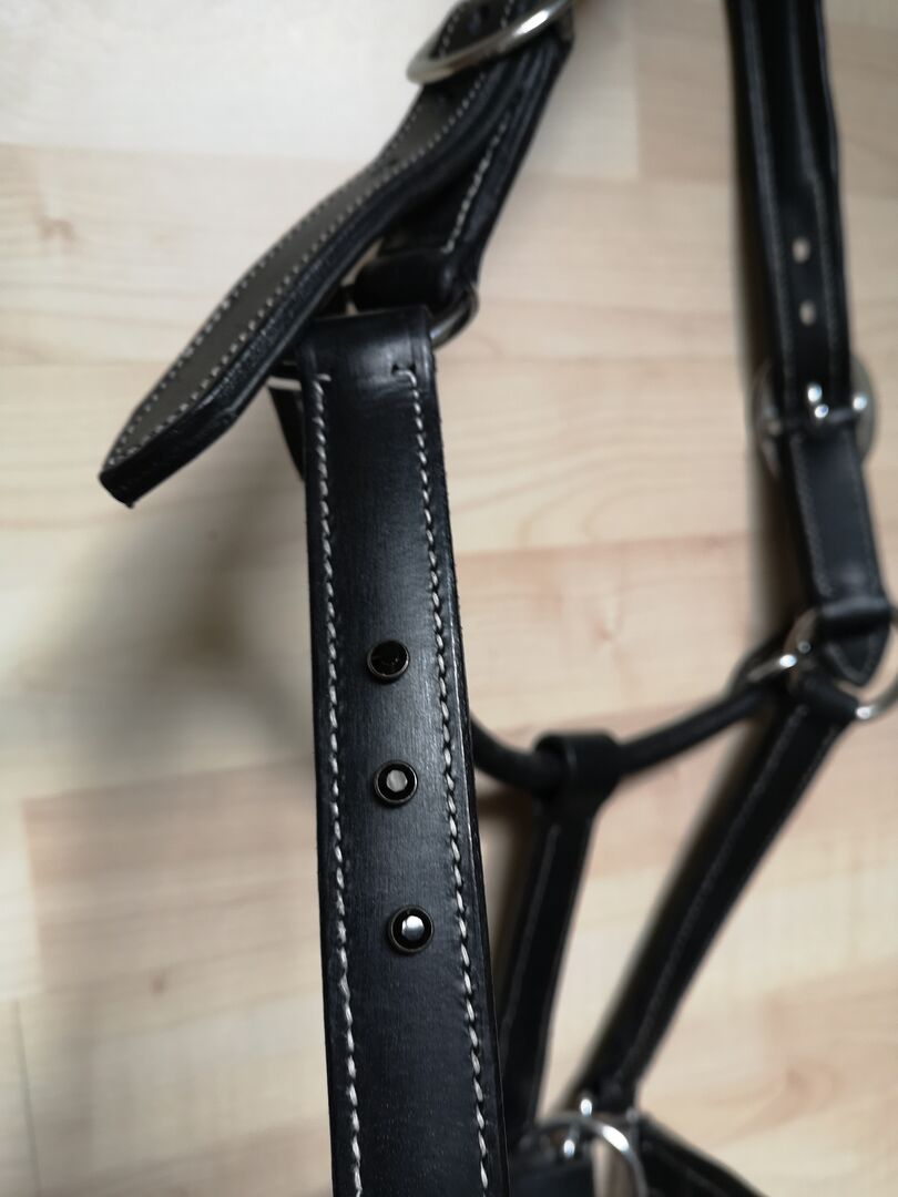 Läderhållare med strass från Bagari - Jag erbjuder ett nytt och oanvänt läderhalsband med svarta strass från Bagari. Sömmarna är ljusa och beslagen är silverfärgade. Storleken är Full/WB