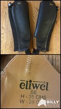 Läderkappar - Erbjuder välbevarade barnchaps i läder från Eliwel för 10-åriga ryttare.