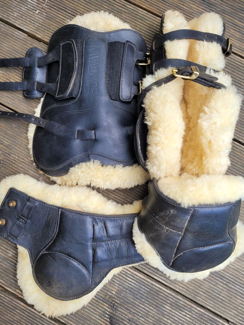 Lädermanschett set WB - Till salu damasker i läder med lammskinnsinsats och reservlammskinn. Damaskerna är Kavalkade Selection och kängorna är från Kentaur. Tyvärr har pälsen på kanten av ett av reservlammskinnen börjat lossna lite. (Se foto) Men du kan inte se det när du bär det.