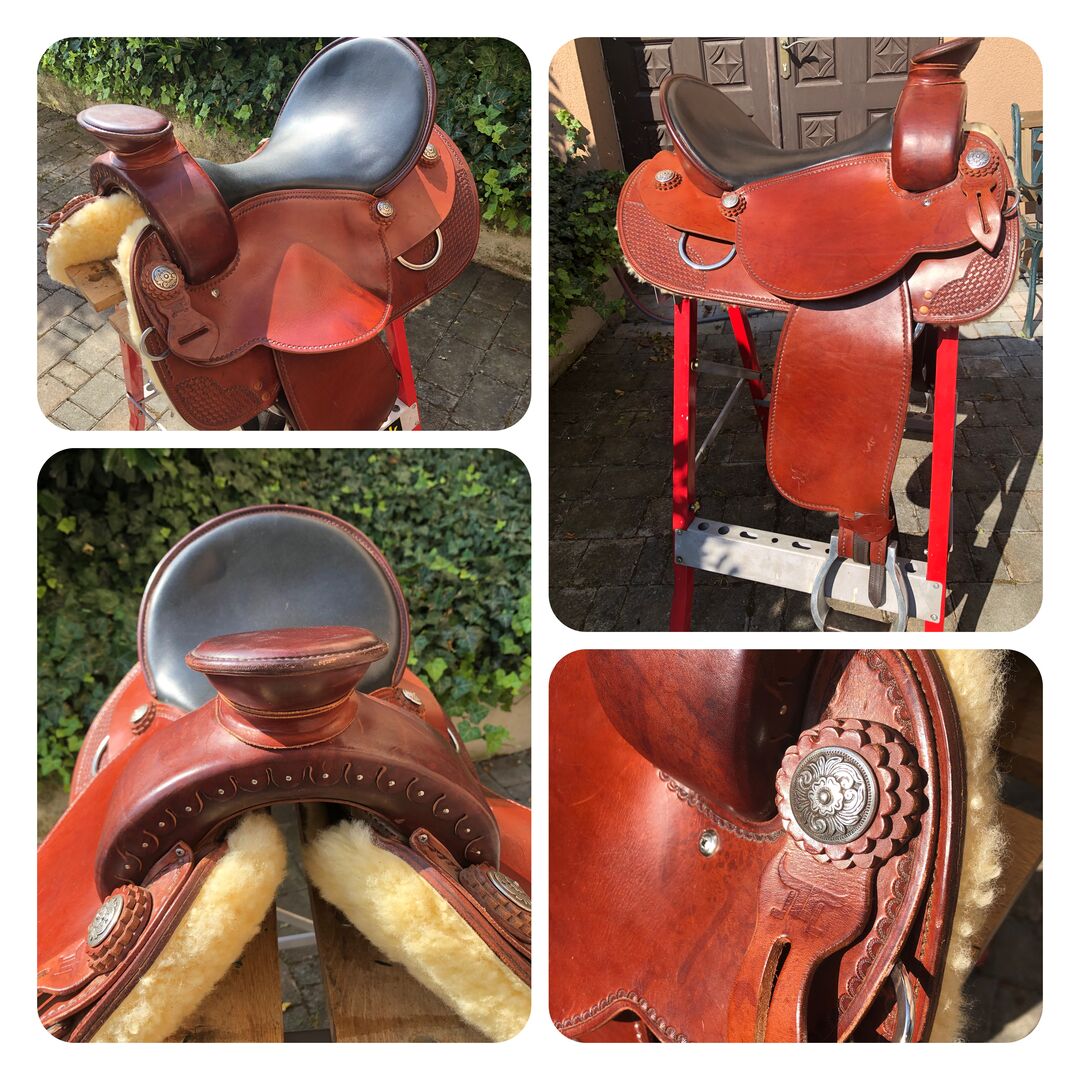 Lätt, kort kalvsadel, mjuk som smör och anpassningsbar! - Lättvikt: Smörigt mjuk, bekväm, så gott som ny Wade-sadel från JvG, 16 tum, för hästar av Quarter Horse-typ, 60 cm kort, sitter ryttaren helt rakt. Till salu på grund av pensionering från ridning. Växer med hästen och kan alltid justeras senare! Inkl. stigbyglar och sadelklaffar. Alltid lagrad korrekt och torr. Nytt pris: 4100.- Euro. Ska samlas in i Innermanzing / NÖ, frakt också möjligt, kostnader som ska bäras av köparen.