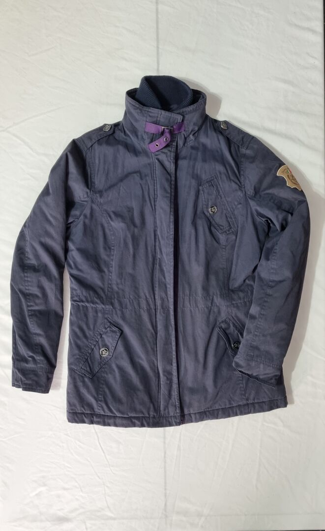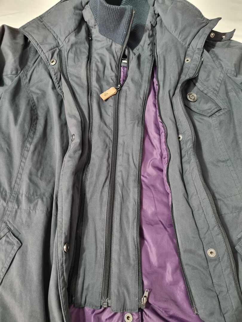 Den har två dragkedjor framtill, varav den inre kan tas bort (se bilder). Jackan har också ett justerbart elastiskt midjeband på insidan. 3 ytterfickor och 1 innerficka
