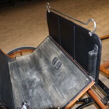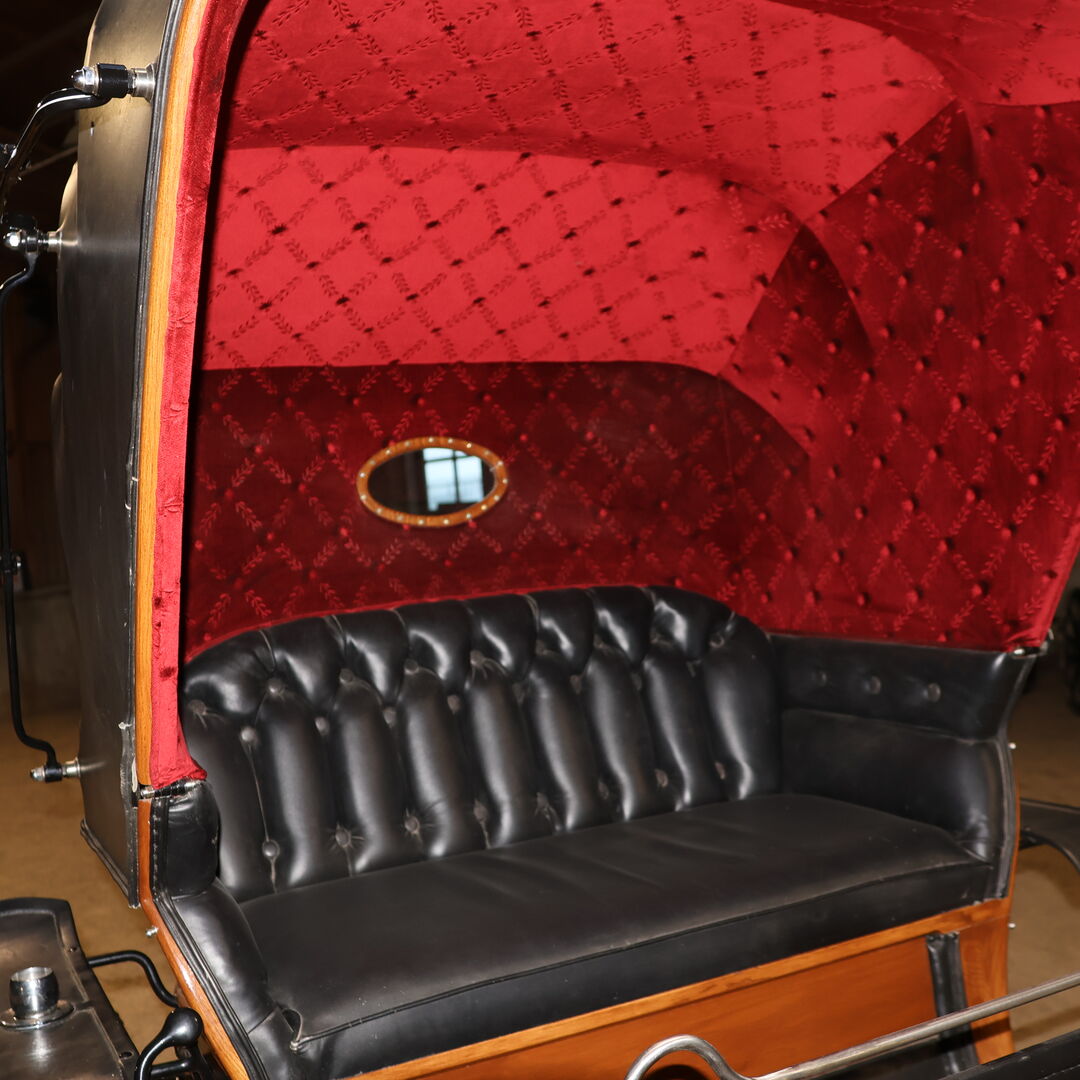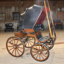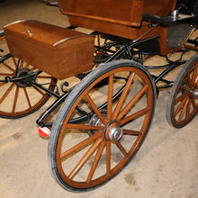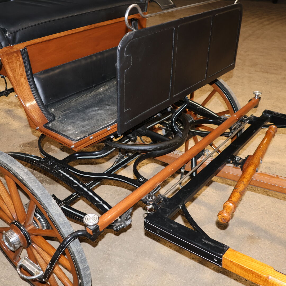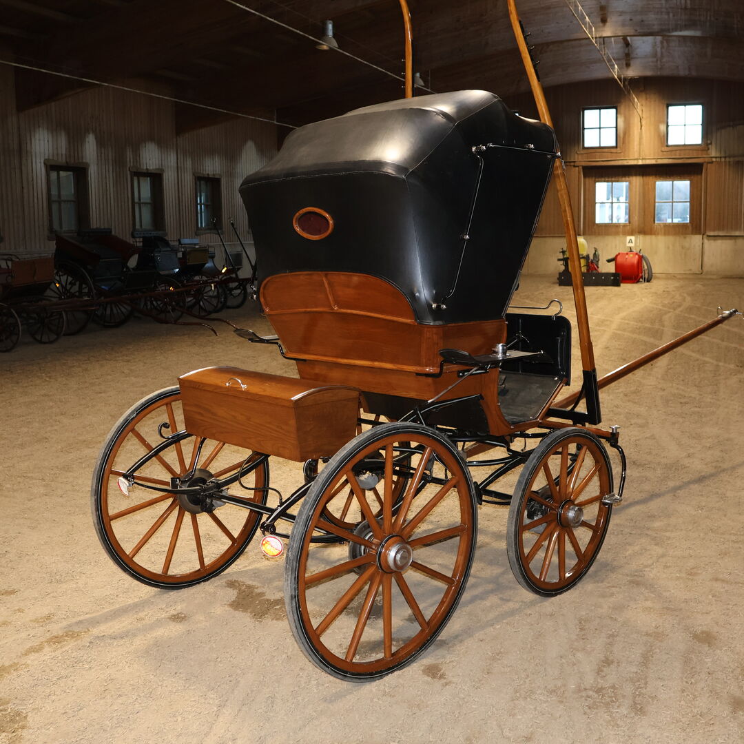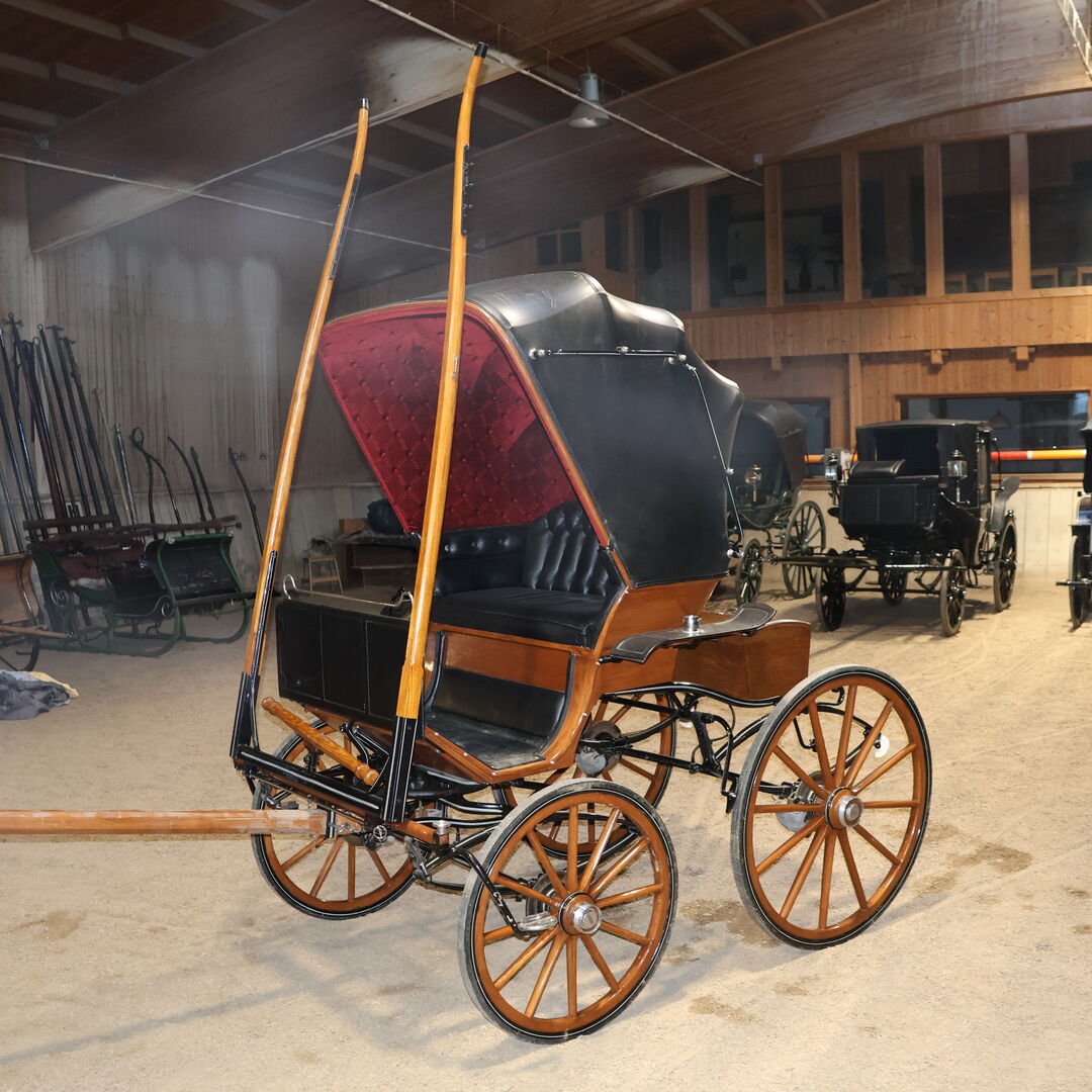 Varumärke: Leitert Typ av vagn: Läkarvagn Hästtyp: Stora hästar Skick: Mycket gott skick (trä i toppskick, klädsel och sufflett i toppskick) Färg: Naturligt trä med svart kåpa (rött tygöverdrag inuti) Omfattning av leveransen: Se bilder