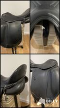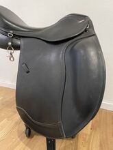 Letek dressyrsadel, som ny, 17,5 - Vi säljer en mycket fin och bekväm dressyrsadel från Letek. Den är i perfekt skick, har kardborrerullar som kan justeras variabelt och har praktiska stigbygelstänger monterade.