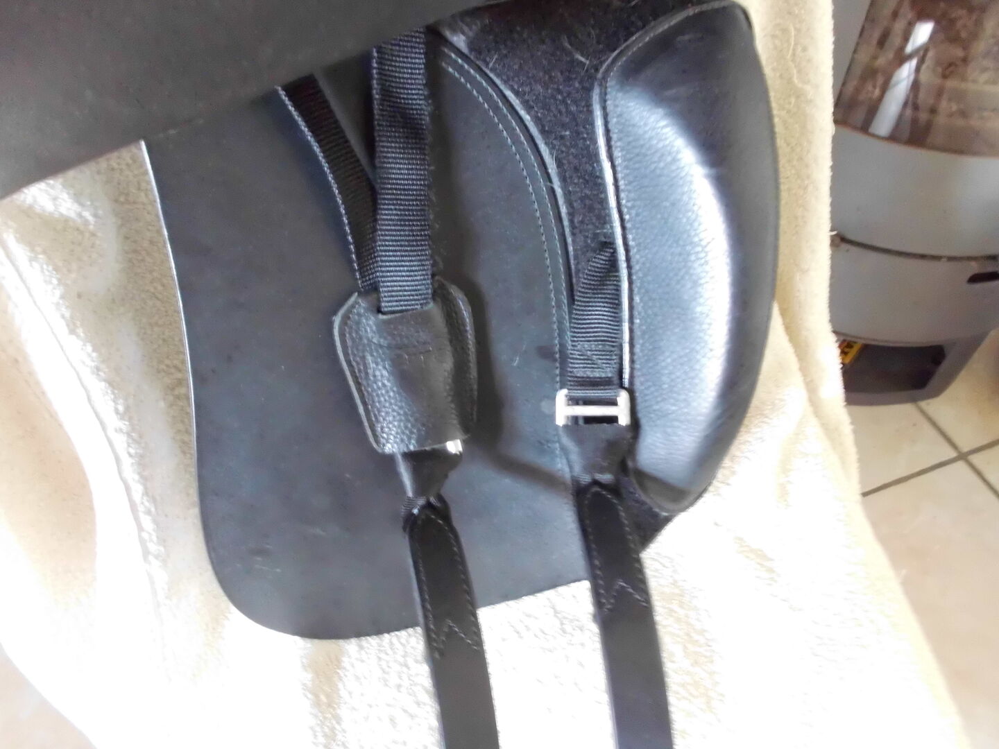 Letek Excellent Dressage Saddle 17 Inch Interchangeable. matstrupeplatta. - Vacker välskött tre år gammal dressyrsadel i läder. En bred munsbit ( gul ) med bred medelbred är inbyggd. Latexpaneler (bananpaneler), mjuk sits. Inget byte, ingen frakt på prov