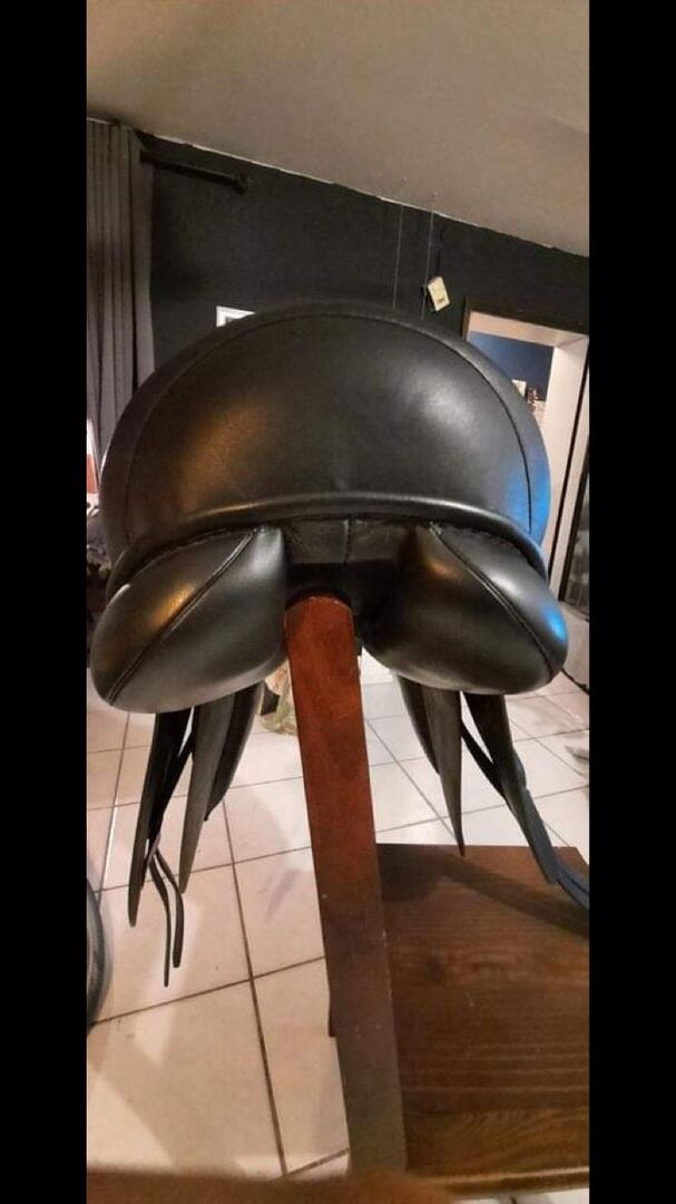 Jag säljer min nya Lexhis dressyrsadel, som bara har använts en gång. Tyvärr fick jag och min mus inte prova den. Den var ursprungligen gjord för ett tungt varmblod. Sadeln kan göras bredare av sadelmakaren, men bredden på sadelmynningen är 33.