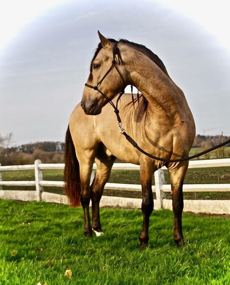 Licensierad PRE-avelssto Buckskin - PRE-Stute i Dunkelfalbe (Dark Buckskin) med nytillverkade skor (16.04.2024)
