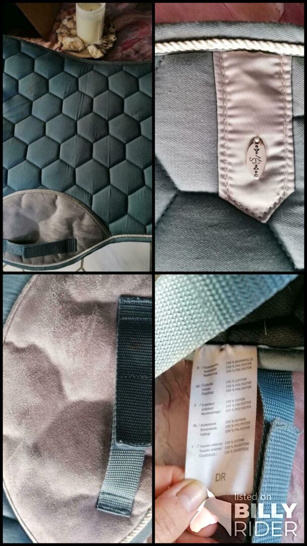 Ljusblå/turkos sadelunderlag/sadelduk från Krämer - Lägger 3x på ponnyn med länsbälte, så har aldrig ridit med den.