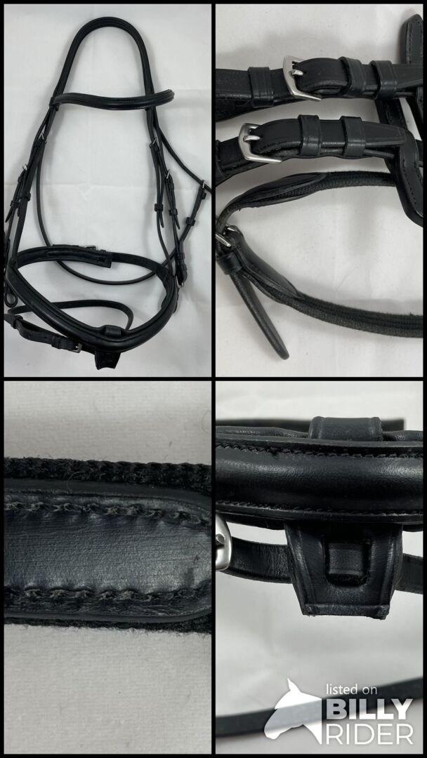 Jag säljer min begagnade svarta Loesdau läderträns med tyglar. Varmblods storlek som inte bars särskilt länge av ett stort norrländskt sto med stora ramar. Svart engelsk kombinerad träns med svart stoppning. Loesdau-logotyp på pannbandet och enkelt broderi på sidan av huvudstycket. Den iögonfallande funktionen är låsbandet som kan dras genom näsbandet, vilket är felaktigt dragit igenom på bilderna. Om du använder kandelen som jag gjorde, utan rem, kan du ta bort klaffen helt och hållet och få en smidig, diskret näsrem. Bridgen levereras med svarta tyglar med läderstänger, som också är i gott skick, men lite smutsiga.