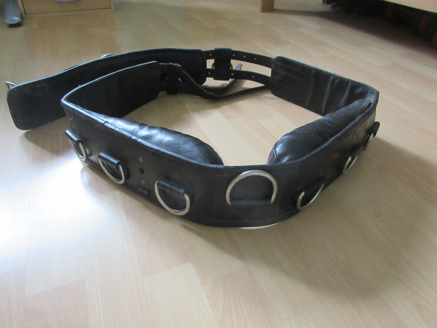 Longeringsgjord, begagnad - även för arbete med dubbellongering - Svart läder - Varmblod - Busse Solibel - Denna longeringsgjord är tillverkad av läder, för varmblod, justerbar till en omkrets på ca. 180 cm till 240 cm, bredd ca. 10,5 cm. Ryggpartiet är väl vadderat med gott om utrymme för manken.