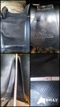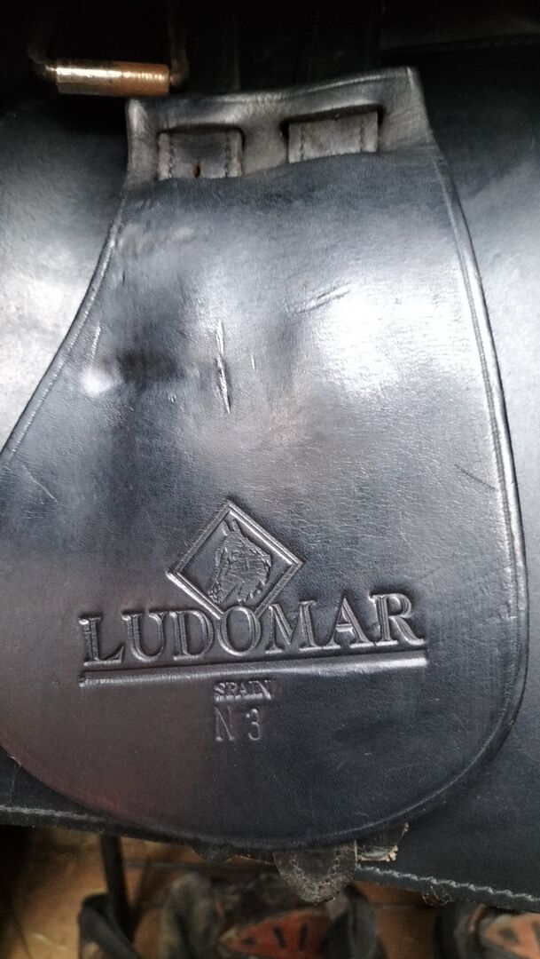 Ludomar portugisisk tjurfäktningssadel - Begagnad, välbevarad Ludomar Portuguesa Mixta i kammarbredd 3 W (motsvarar ca KW 34/35) i svart slätt läder och mocka med traditionella silverbeslag och nitar. 18" Portuguesa Mixta kallas även Caballero, inkl. sadelklaff. NP 1565 €.