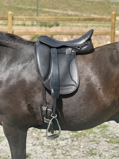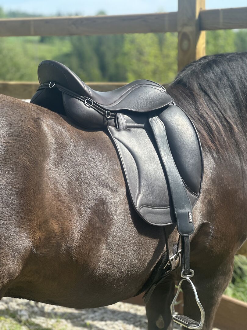 Speciella egenskaper: Sofistikerad hästvänlig monoflapsdesign - paneler fastsydda på sadelklaffen, integrerade paneler - inga irriterande kanter eller exponerade remmar på hästens kropp.