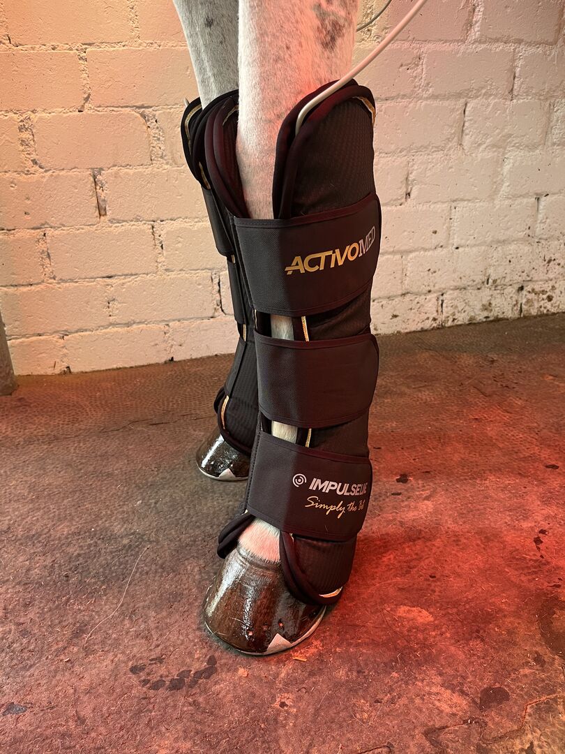 Jag köpte uppsättningen ny i mars 2023 (nytt pris 6 200 €). Magnetfältsuppsättningen är så gott som ny. Den användes endast av mig och erbjöds inte för uthyrning. Jag är i allmänhet mycket nöjd med apparaten. Den har gjort ett mycket bra jobb i mitt hästterapicenter för inneliggande patienter. Jag säljer setet eftersom jag nu bara reser som hästterapeut och vill byta till ActivoMed WLP Powerpad.