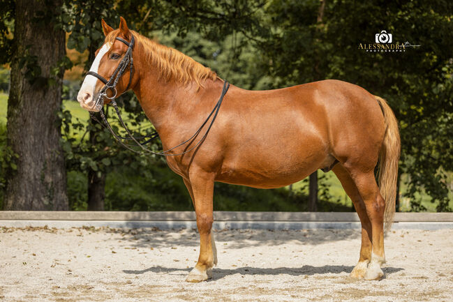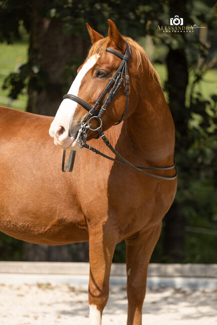 ...är en färgstark kastanjebrun ponnyvalack vars hjärta knappast kan överträffas i vänlighet och storlek. Han får alla att le på ett nästan magiskt sätt. Utrustad med en karaktär av guld och massor av komfort är han otroligt rolig att rida. Hans barocka utseende är bedrägligt vid första anblicken, eftersom han bär sig själv, är genomsläpplig och är fin på hjälperna.