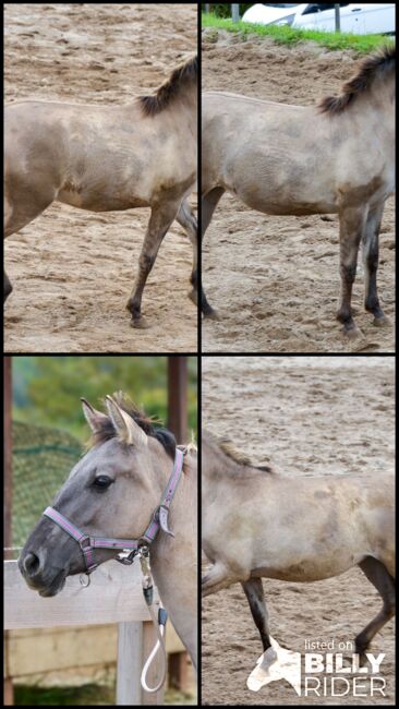 Manja sucht einen neuen Möhrchengeber, der ihr alles weitere beibringen kann. Sie ist eine bezaubernde Konik-Jungstute, geboren im Januar 2024. Diese charmante Silber-Graufalbe hat derzeit ein Stockmaß von 135 cm (gemessen), mit langen Beinen und einer sportlichen Statue. Sie stammt aus einer Sportkonik-Linie. Beide Eltern sind über 1.45m.