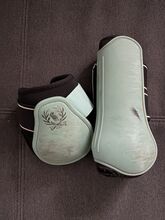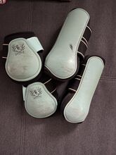 Manschett från HV POLO - Set från HV POLO, damasker och flockstövlar storlek varmblod mycket fin färg (turkos/petrol) med tecken på slitage, men fortfarande i gott skick/bra för användning.