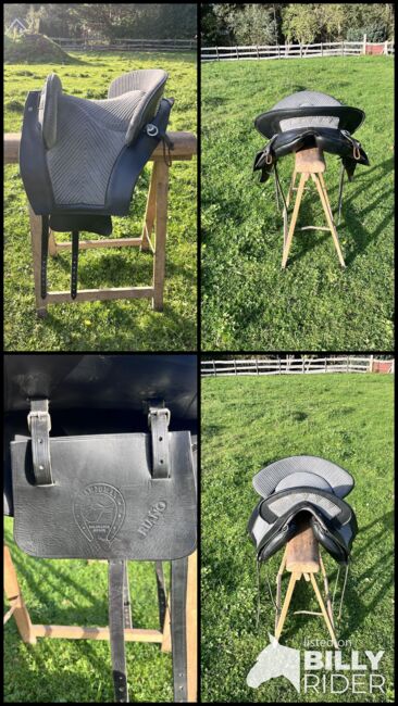 Marjoman Riano med Zalea grå-svart - Vacker Marjoman Riano sadel i gråsvart med matchande fårskinn Zalea, i mycket gott skick och mycket lite använd. Sadelstorlek, se foton.