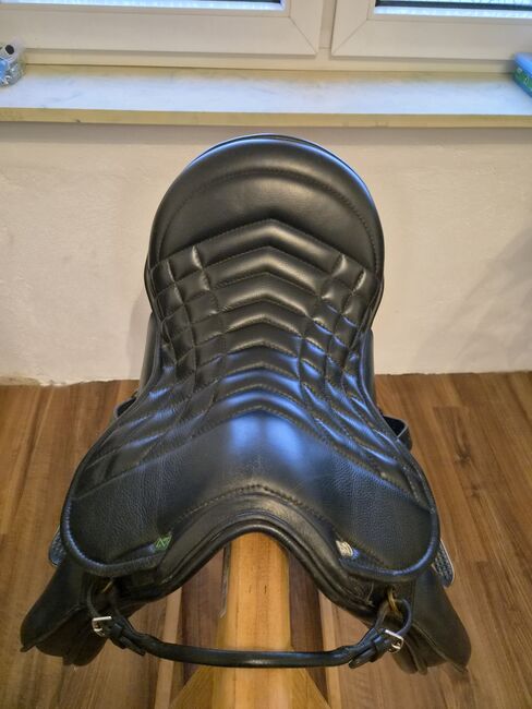 Sadeln har nyligen vadderats och kan därför användas direkt. Det erbjuder ett djupt, bekvämt säte och är särskilt lämpligt för bredare hästar (t.ex. Haflinger, starka varmblod etc.).