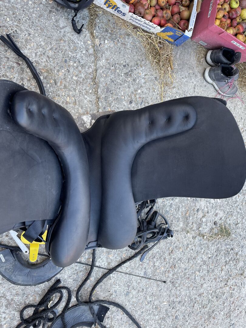 Originalrapport i bilder. Sattel passar leider meinem Pferd nicht, lag nur 5 Mal drauf, ansonsten im Spind, också nytillverkad. Kammer 32, kann geweitet werden. Zoll 18,5, faller som en 18 ut.