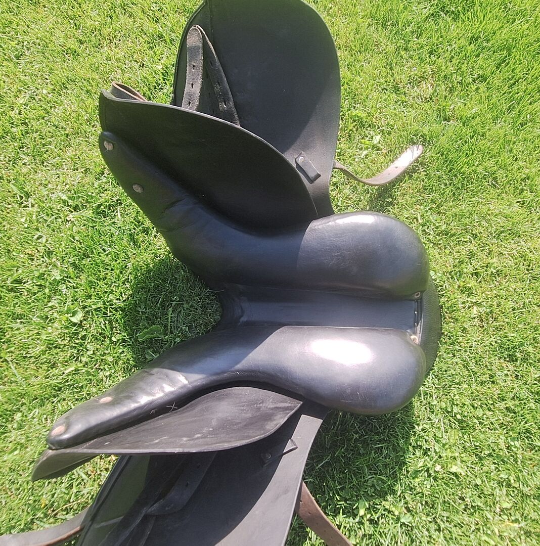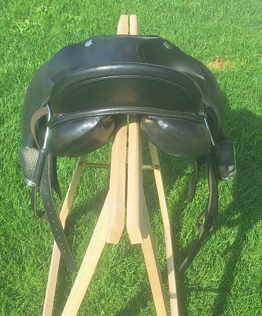 Massimo VSD sadel, 17 tum, KW(36) 38, franska paneler - Då min häst tyvärr inte längre är ridbar säljer jag en Massimo VSD sadel, korta franska paneler, bygel ca 38cm, storlek 17 tum. Kammarbredd 36 är stämplad i. Ullpaneler kan vadderas efter behov. Normala tecken på användning. Inga tårar eller hål. Men kan läras upp igen. Sadeln kan alltid enkelt justeras av sadelmakaren. Sadeln var monterad på en 148 cm norsk. Stigbyglar och remmar har bara använts några få gånger (som nya)