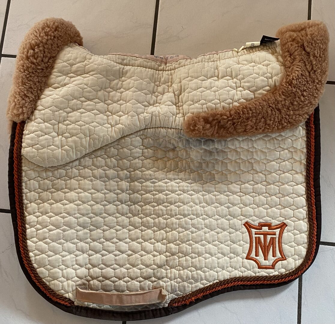 Mattes dressyrsadelunderlag storlek L - Jag säljer en DR matt sadelunderlag. På grund av tvätten är det mer som en storlek M. Jag kan mäta den igen om du är intresserad. Päls även under sadelunderlaget.