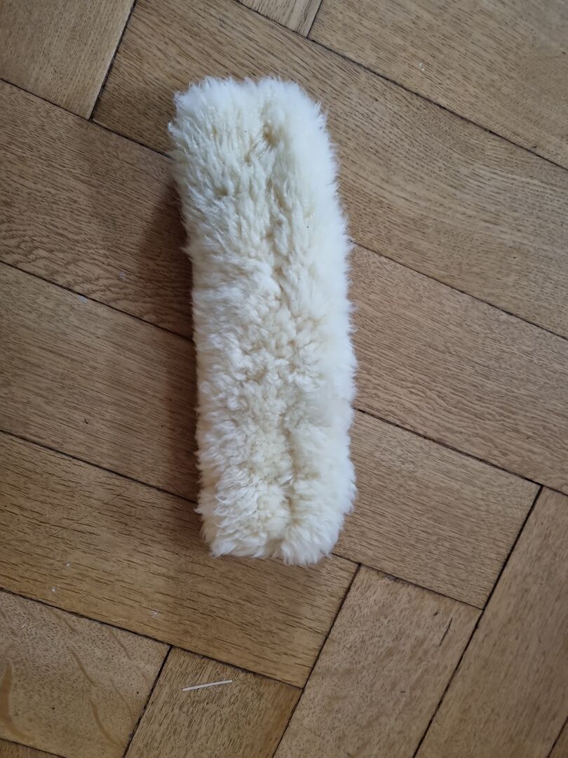 Mattes näs- och halsskydd av lammskinn - Praktisk stängning med kardborreknäppning.