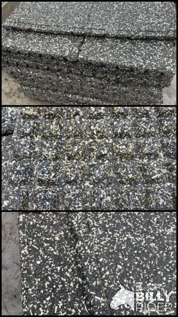 Mattor för hästhagar - Till salu är paddockmattor/stallmattor i storleken en kvadratmeter per matta (1m x 1m x 4cm tjock), nypriset per matta var 80€. Mattorna är vattentäta vilket gör att de håller mycket längre än vattentäta mattor, de är ungefär ett år gamla. Mattorna väger cirka 50 kg per matta, så tack vare sin vikt glider de inte lätt. Det finns cirka 45-50 kvm tillgängliga, endast 20 kvm mattor kan tas bort åt gången, resten är trasiga mattor och sektioner, jag lägger till dessa gratis. Priset är 35 euro per kvadratmeter. Sista pris sista chansen, priset på 35€ per matta gäller endast om alla mattor är köpta!