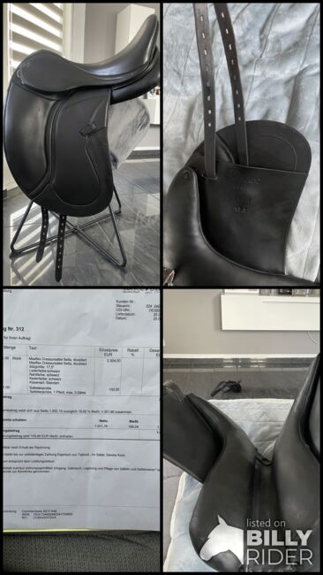 Detaljer om sadeln: - Modell: Maxflex Bella (mono flap dressyrsadel) - Djup sits, mycket bekväm och nära hästen - Dubbelt kalvskinn av hög kvalitet - Flexibel sadelbom med justerbar kotlettplatta (jag kan mäta vid behov) - Fransk fyllning av paneler - Kardborrebandspaneler kan placeras individuellt - Mycket hästvänlig passform tack vare flexibel konstruktion