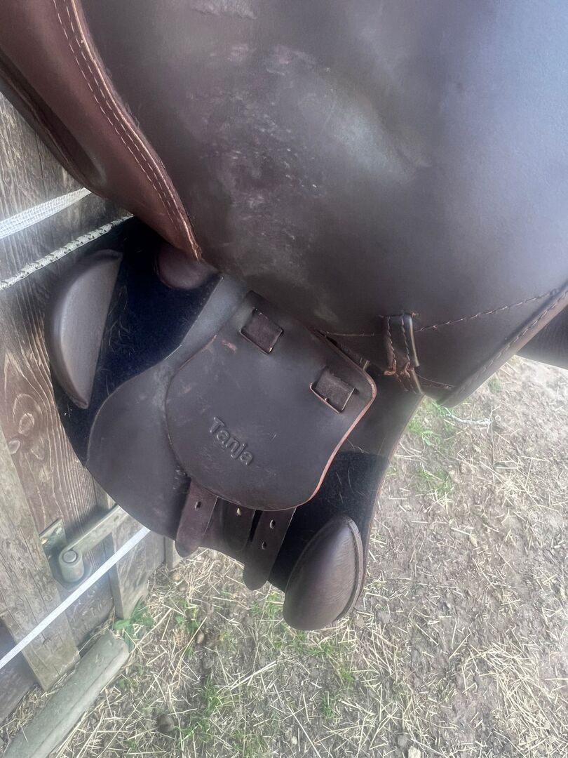 Maxflex Tanja Hoppsadel 18" Brun - Säljer en lite begagnad Maxflex sadel som suttit på mitt Noriker sto. Tyvärr passar den inte längre. Sadeln är otroligt skön att sitta i tack vare kardborrekuddarna och det djupa sätet. Även med en livlig häst sitter man bekvämt i den. Kardborrpanelerna är individuellt justerbara.