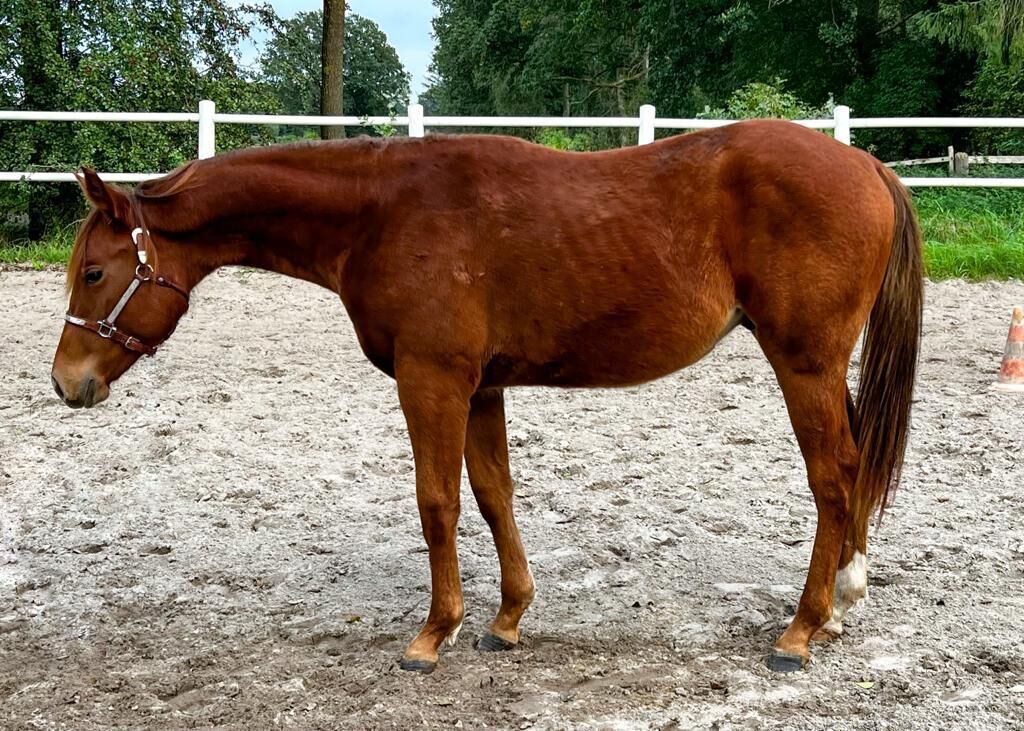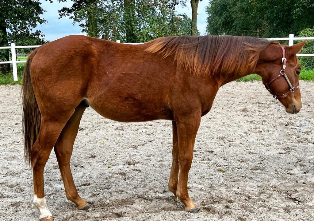mild, vänlig Paint Horse-valack med förstklassig stamtavla - Till salu är en mycket söt, mild åring med exceptionellt bra stamtavla. Han är född 5.2022 och kommer att ha en beräknad slutlängd på 154 cm. Huntin Red Arun är en mysig valack med en fantastisk överlinje, mycket långa, raka ben och en stark byggnad. Han har också ett vackert ansikte. Han växer upp i en liten besättning och hanteras dagligen. 6-panel n/n om föräldrarna. Kör trailer, är väluppfostrad när han leds och ger sina hovar fritt hos hovslagaren. Åringen är en mycket bra rörelsemänniska. Hans far är den välkända och mycket framgångsrikt visade Paint Horse hingsten Midnight Asset DH (PHCG High Point Horse Senior Pleasure, PHCG German Leading Bred Senior Pleasure, APHA ROM Open Pleasure, APHA ROM Green Trail, APHA ROM Open Hunter under Saddle etc.). Modern till den lilla är en A Touch Of Sudden-dotter efter en Huntin For Chocolate-mamma. A Touch Of Sudden är AQHA Leading Sire, NSBA Top 5 Leading Sire, NSBA All-Time Leading Sire. En exceptionell, bra stamtavla för Pleasure och Allround klasser. PHCG Futurity kvalificerad. Arun förväntas bli en bra utställningshäst och/eller en bra följeslagare i pleasure.