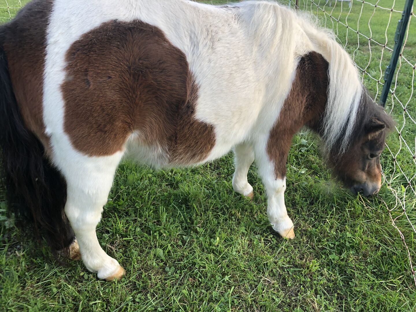 Mini Shetty Mare - Om allt passar skulle vi vilja sälja vårt Minishetty sto. Hon är född den 20 maj 2016. Hon är väldigt liten på strax under 80 cm och därför inte lämplig som ridhäst för barn. Hon kan dock skötas bra av barn, när hon leder provar hon ut med barnen, så de bör vara lite äldre barn. Vi håller henne i ett öppet stall året runt med begränsat bete. Ingen exemer, laminit eller andra sjukdomar. Hon känner hovslagaren och kan också ridas i en hästbox. Vi skulle vilja att hon fick ett 5-stjärnigt hem med ponnysällskap och kärleksfulla händer som tar hand om henne. Vi får inte glömma att även små ponnyer behöver sysselsättas och inte bara som gräsklippare! Jag kunde också föreställa mig henne i ett ekipage framför en liten vagn. Men hon var inte selad hos oss. Regelbundet maskad, pass tillgängligt. Det är inte en nödförsäljning så var rättvis i dina affärer! Det är naturligtvis möjligt att lära känna henne efter överenskommelse. Kommer inte att säljas som en sidohäst för en stor häst.