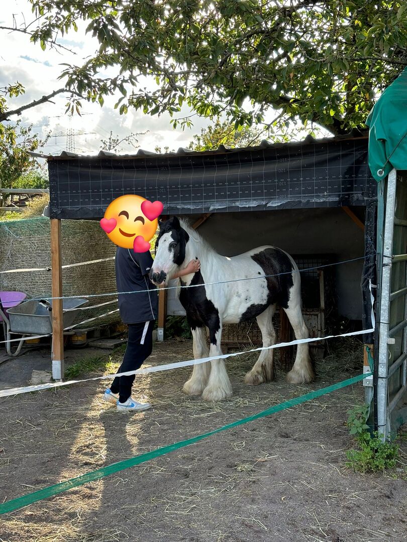 Mini tinker sto - Till salu är detta söta Mini Tinker-sto född 2018. Lexi är 6 år ung, ca 130 cm lång, har ett blått och mörkt öga och är lite blyg och misstänksam i början, men detta avtar när du hanterar henne och behandlar henne känsligt. Hon kan groomas väl, hon ger också hovar, (hovar gjordes nyligen.) Hon vet också hur man duschar, hon vet hur man lungar i alla 3 gångar, hon bryts för närvarande in. Hon lär sig så snabbt att hon nu kan ridas fritt i arenan, i skritt, trav och galopp. Höger hand är inte hennes sak just nu, men det är en träningssak. Hon är helt avslappnad när hon är ute på promenad. Hundar, traktorer och bilar är inga problem, Lexi är van vid att hållas i en låda och i ett öppet stall och är mycket social och kompatibel med besättningar. Hon var maskad i maj, priset är förhandlingsbart, kommer att säljas utan tillbehör ... Jag skulle vara väldigt glad att hitta henne ett hem för alltid.