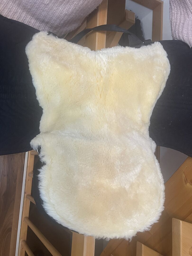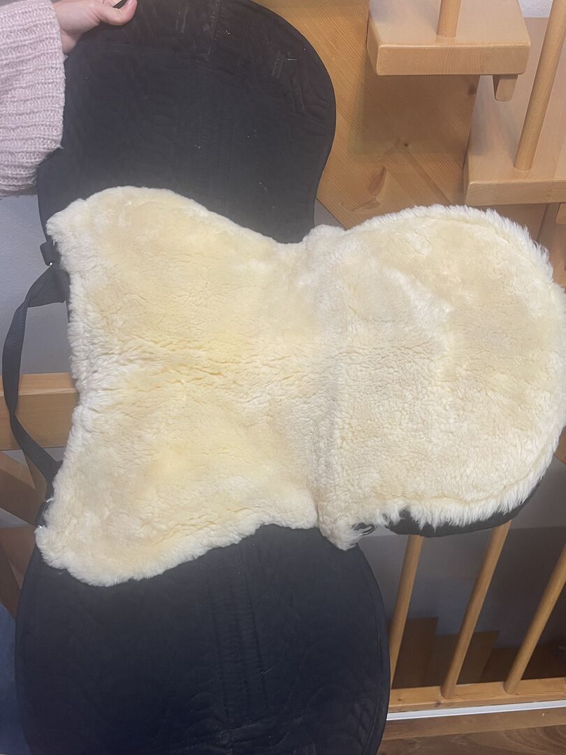 Mint lammskinnssadel från Showmaster - Denna lammskinnssadel från Showmaster är till salu så gott som ny. Den har bara använts ett fåtal gånger, så den är så gott som ny.