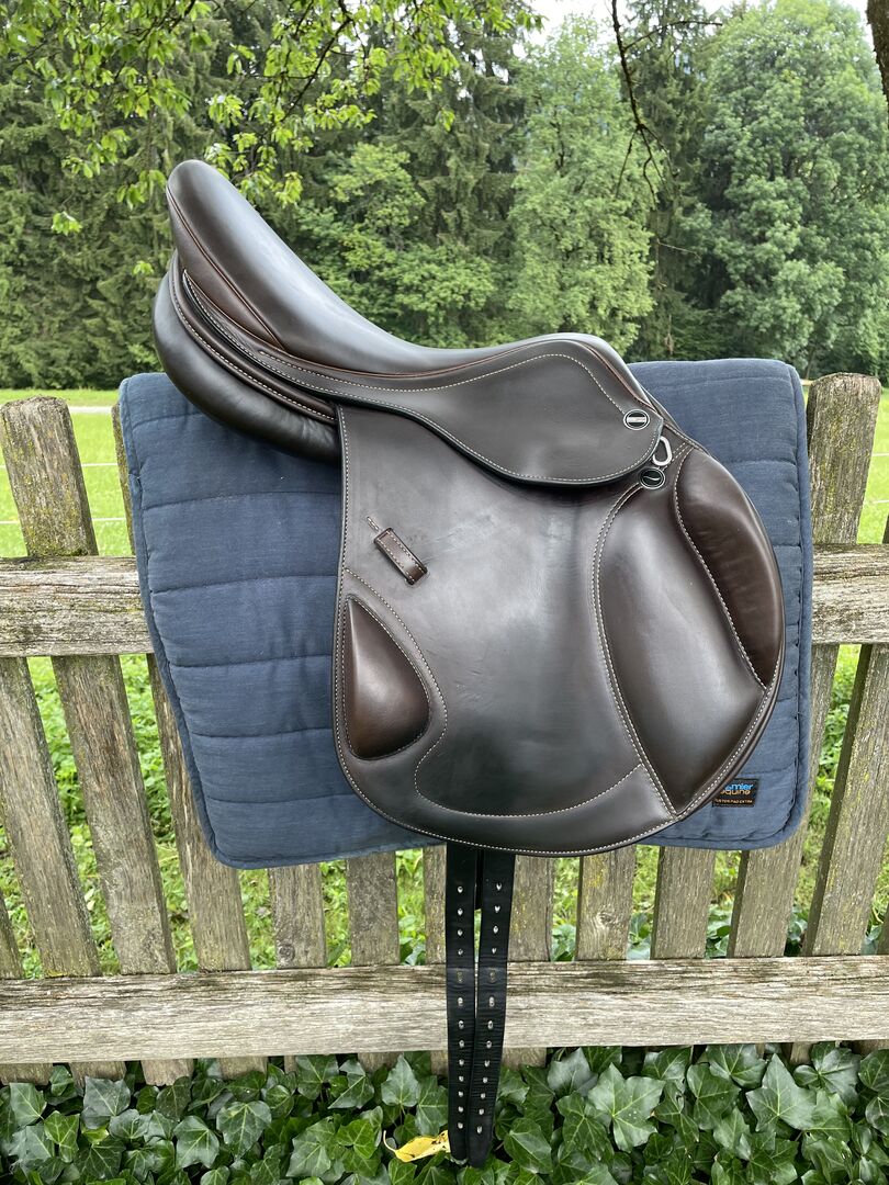 Monoblate hoppsadel Erreplus EM 17/34 brun - Jag säljer en mörkbrun hoppsadel från Erreplus i nyskick. Det är modellen EM - en sadel med en enkel klaff i en klass för sig. Storlek 17" och originalmåttbredd 34 - har aldrig ändrats! Ullpanelerna garanterar en exakt passform för hästen, och sadelträdet kan justeras av sadelmakaren som önskat.
