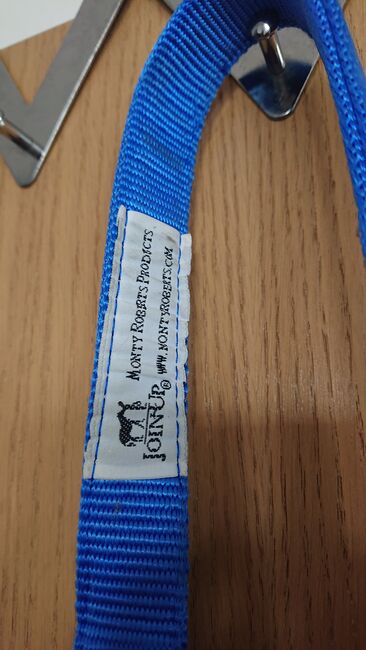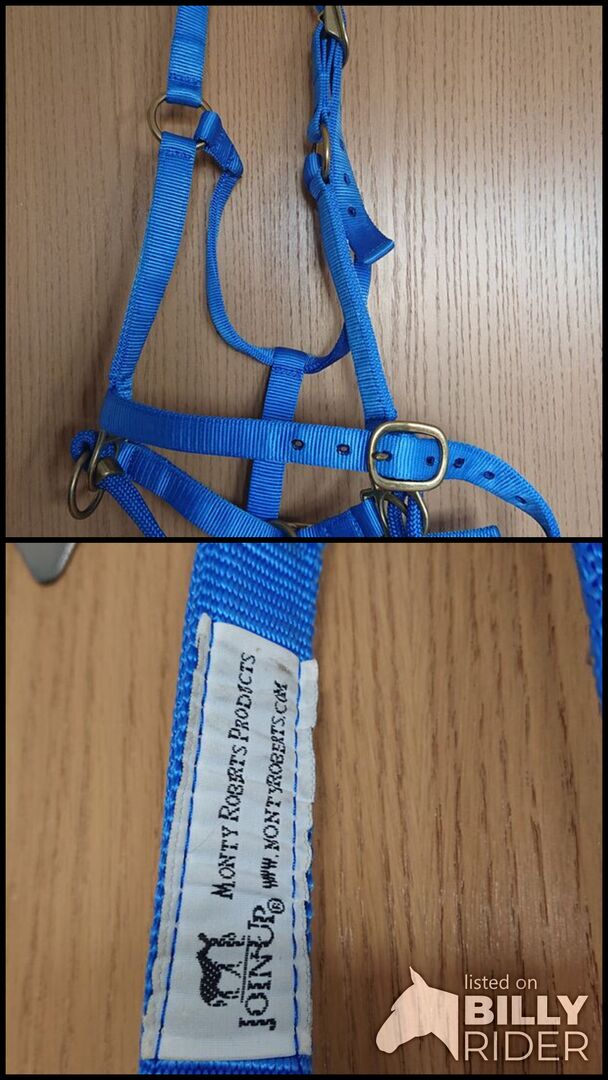 Monty Roberts Dually grimma, blå - Till salu blå Monty Roberts Dually träningsgrimma, knappt använd, storlek varmblod. Med CD. Se annan annons för matchande longlines. Rabatt vid köp av båda.