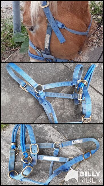 Monty Roberts Dually Halter blå (Varmblod, F) - Med tecken på slitage men fullt funktionsduglig.