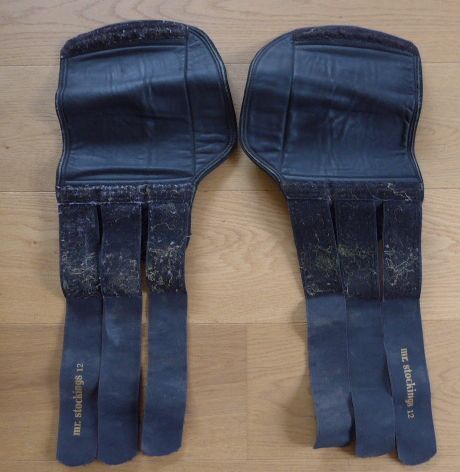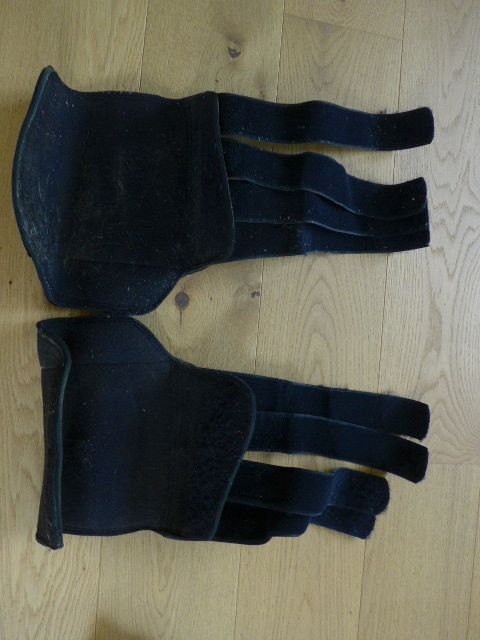 Mr Stockings damasker, svart, WB, begagnad - Jag säljer mina mycket älskade Mr Stockings damasker eftersom de inte passar vår nya häst. Annars skulle jag inte sälja dem eftersom jag är helt övertygad om kvalitet och funktion. De har tjänat vår avlidna körhäst väl; jag har sytt fast kardborrebandet på en av bakkapporna och de fungerar fortfarande.