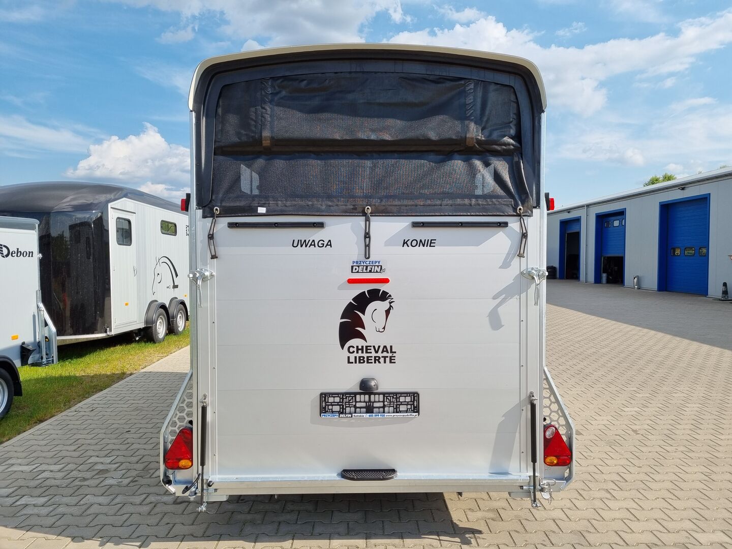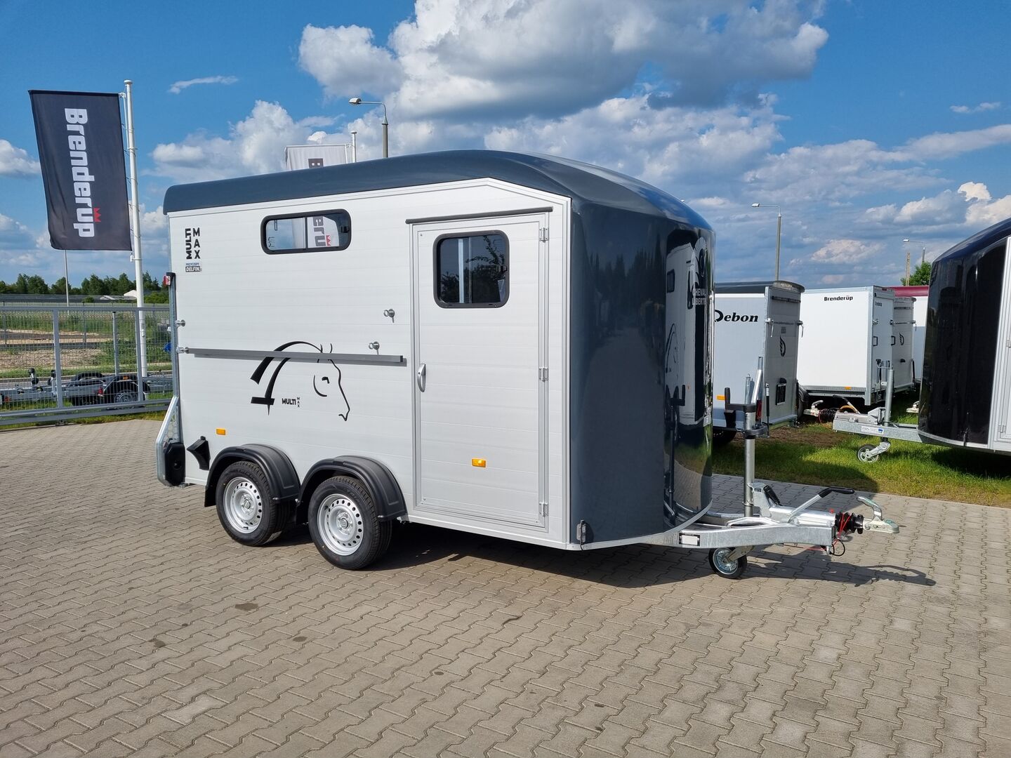 Multimax Liberté hästsläpvagn med stort sadelmakeri och modulär konfiguration - Dubbelhästvagn med aluminiumram, extra breda sadelgjordar, ledad mittdelare, Pullman II-upphängning och förstärkt polyestertak. Idealisk för bekväm, säker och praktisk transport över alla avstånd.
