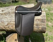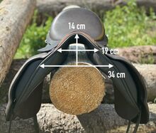 Mycket kort islandssadel 40 cm 17" KW34 - Frakt på prov - Islandssadel Töltsattel Islandshäst - Mycket kort isländsk sadel för raka ryggar - 17" - sits ca 40 cm (total längd 42 cm) - KW 34 - bred ryggkanal (se foton för mått). Leverans efter godkännande (försäkrad med DHL-spårningsnummer).