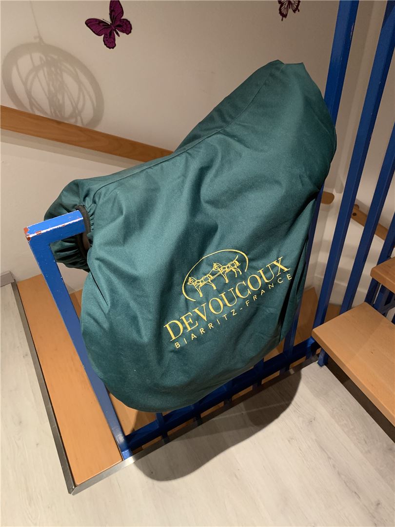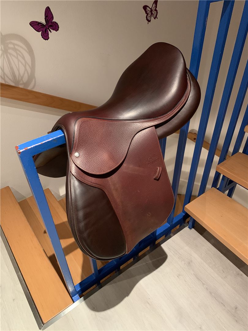 Mycket väl underhållen hoppning sadel - Med tungt hjärta säljer jag min välskötta Devocoux Biarritz O hoppsadel i Havannafärg.