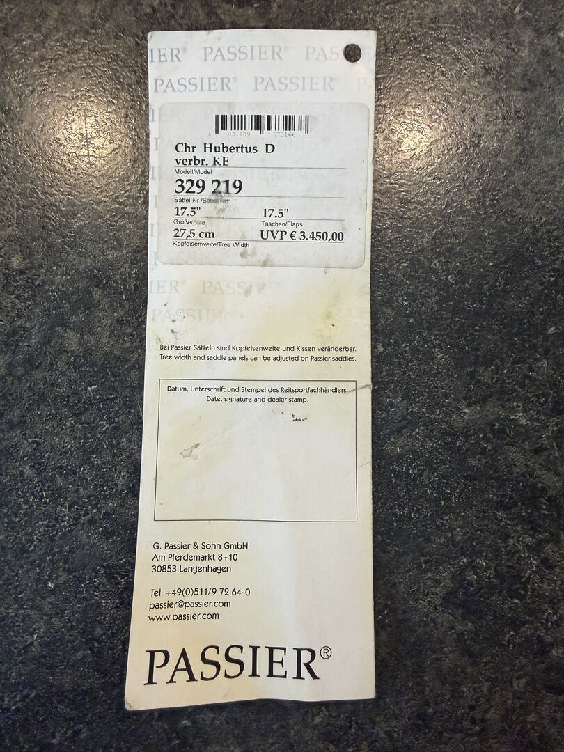 Mycket välskött Passier CSH 17.5 stol till salu - På grund av pensionering erbjuder vi vår Passier dressyrsadel, designad tillsammans med Christoph Hubertus, till försäljning. En superbekväm sadel, med maximal axelfrihet och fri manke för hästen. Tyvärr behöver vi inte längre sadeln. Sadeln rengjordes helt och stoppades om förra hösten av sadelmästaren Mr Eck från Erkrath och förvarades sedan hemma på en torr plats på grund av min dotters graviditet. Fakturan ingår i köpet. Jag skulle gärna komma förbi med sadeln inom en radie av 50 km runt Xanten. Sadeln är helt enkelt för bra för att samla damm.