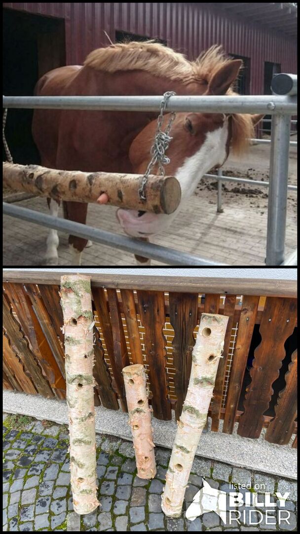 Nappar stammar, sysselsättningsleksaker - Björkbitar för hästar i olika storlekar. Du kan lägga morötter i hålen, som hästarna måste ta ut - en idealisk sysselsättning.