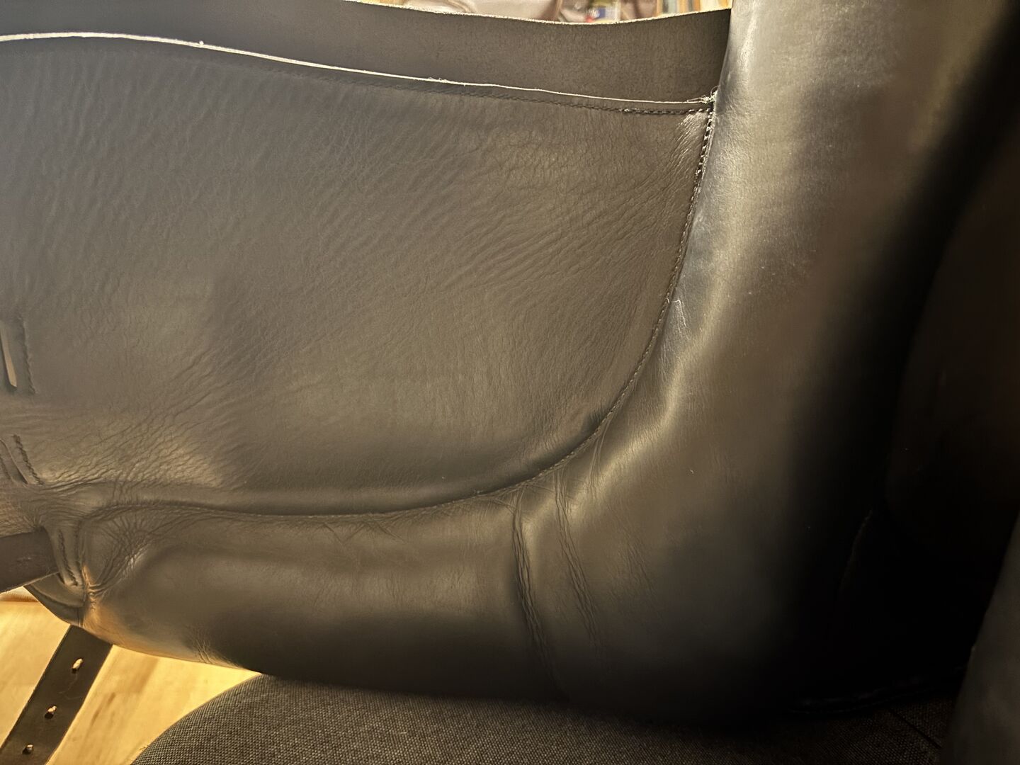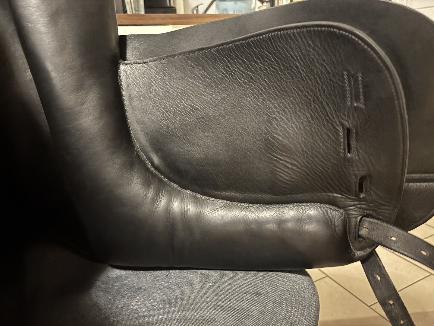 Skick: Sadeln är i ett begagnat men välvårdat skick. Den uppvisar de vanliga tecknen på slitage. Lädret är något uppruggat på sitsen (se foton). Inga kända skador.