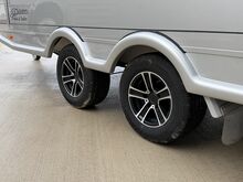 Tandemvagn, aluminiumfälgar, Knott-axlar för stabil väghållning och hög komfort, dragstång och påskjutsfäste även från Knott