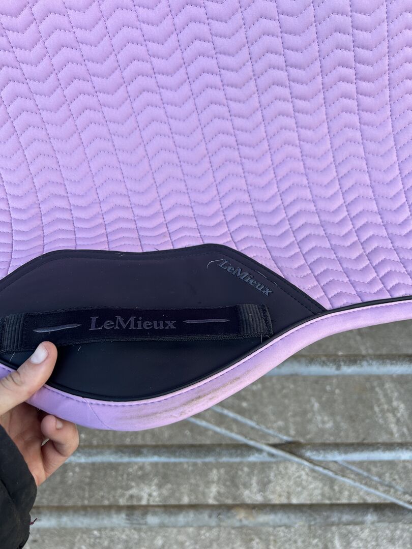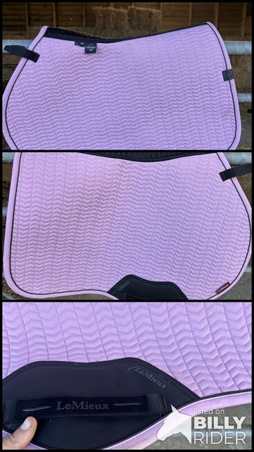 Only used once or twice and doesn’t fit my saddle unfortunately. Only has some stubborn grey hairs and a mark where the girth sits.