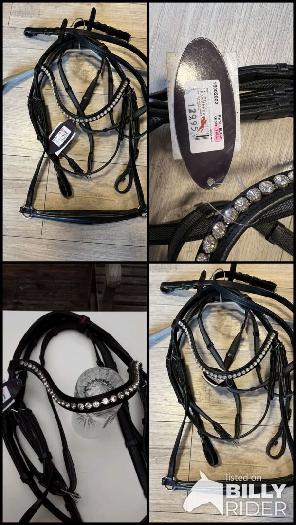 Ny Hanoverian Dressage Snaffle Rhinestone - Ny dressyrträns från Euroriding med strassband och tyglar. Storlek Full, färg svart
