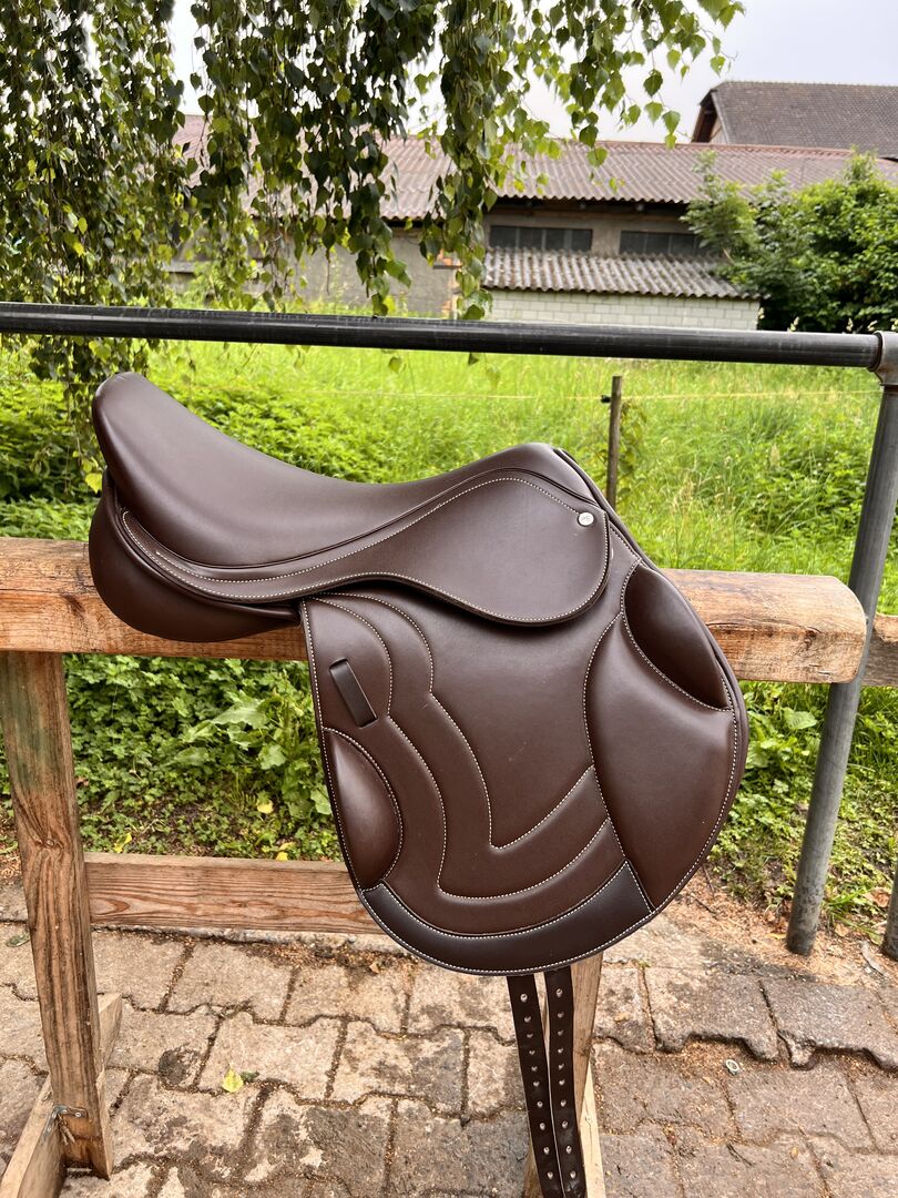 Ny hoppsadel - Säljer denna nya hoppsadel. Aldrig använd, bara varit på hästen några gånger (utan ridning). Tyvärr passar den inte min häst alls på grund av de långa remmarna.