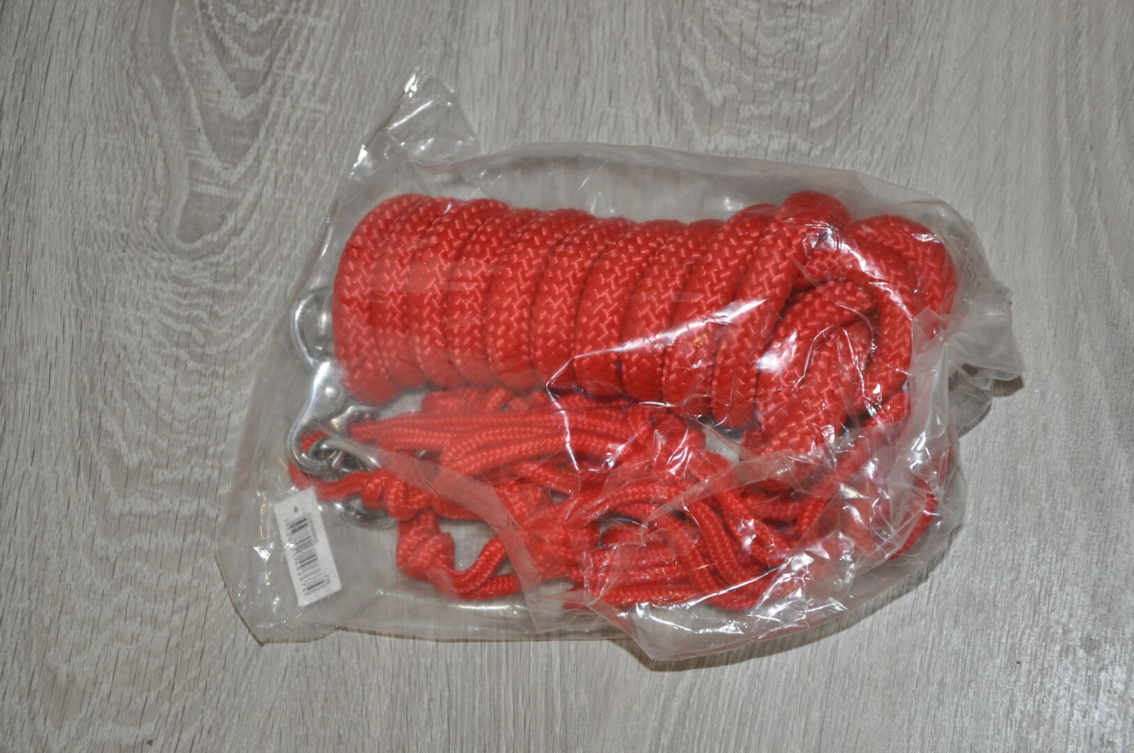 Grimma av polypropylen med knuten sladd. Tyglarna fästs med 2 spännen i rostfritt stål på nosgrimman. Med ett par tyglar, lätt avtagbara tack vare förkromade mexikanska karbinhakar av zink. Total längd 3 meter.