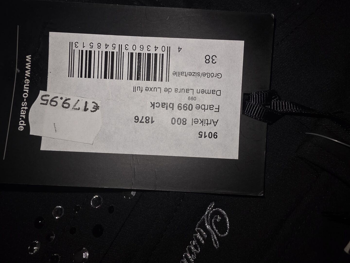 Nya byxor från Euto-Star - Ny och oanvänd byxa med fullsittande Euro-Star, svart, storlek 38, fina glitterapplikationer fram och bak