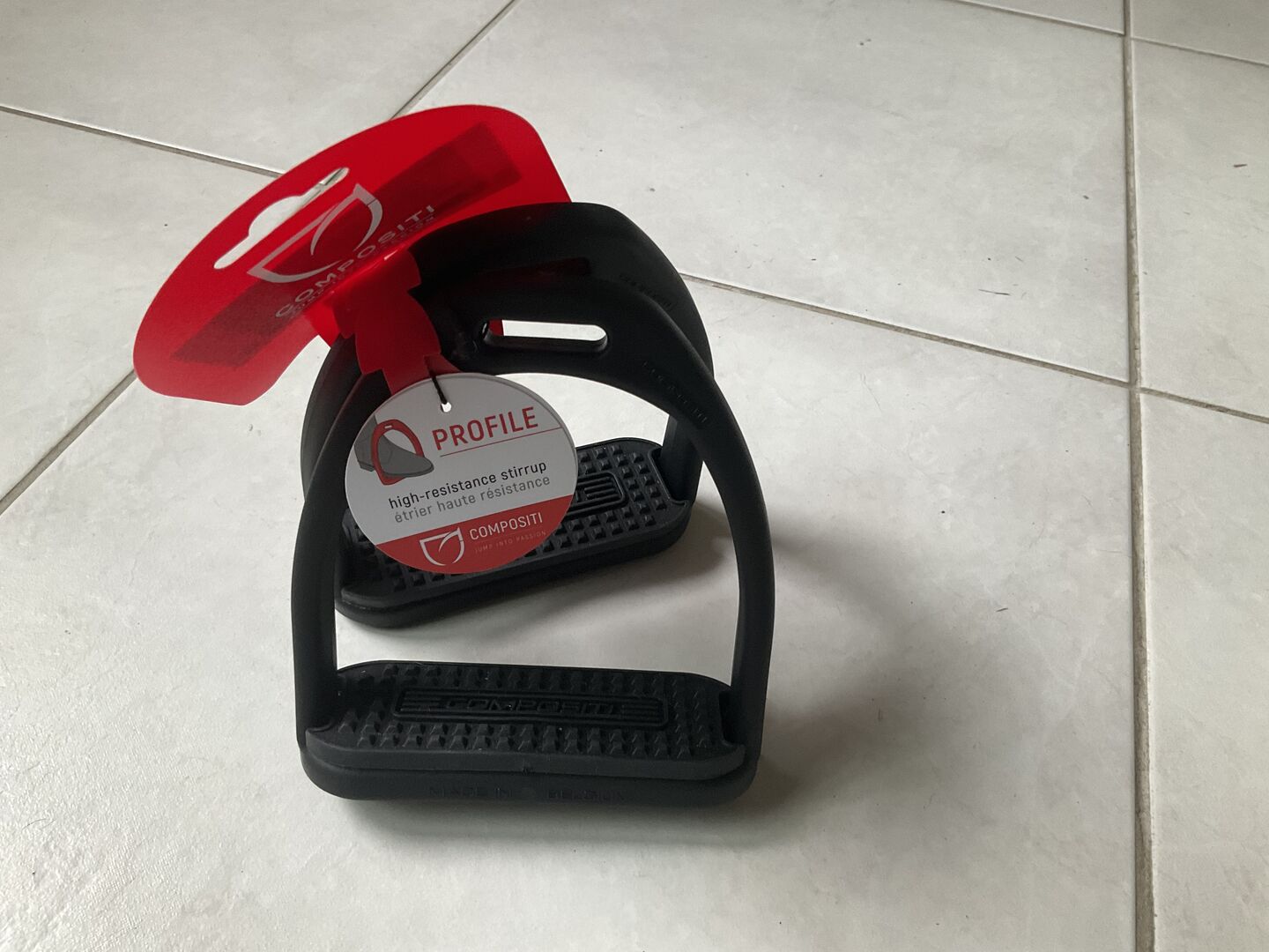 Nya stigbyglar i plast 12 cm - Jag säljer ett lätt, stöttåligt och, enligt tillverkaren, fuktbeständigt par stigbyglar av plast med en elastomer slitbana. Eftersom jag har nya behöver jag inte längre dem.